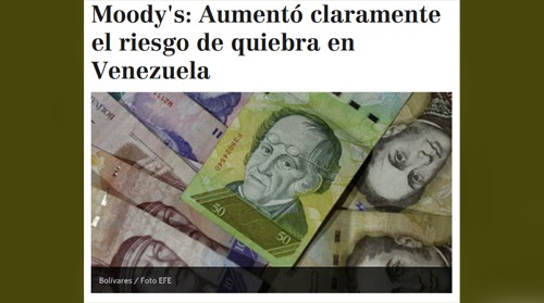 El Martes 13/1/15 la agencia Moody’s rebajo la economía venezolana a solo un paso de la quiebra.